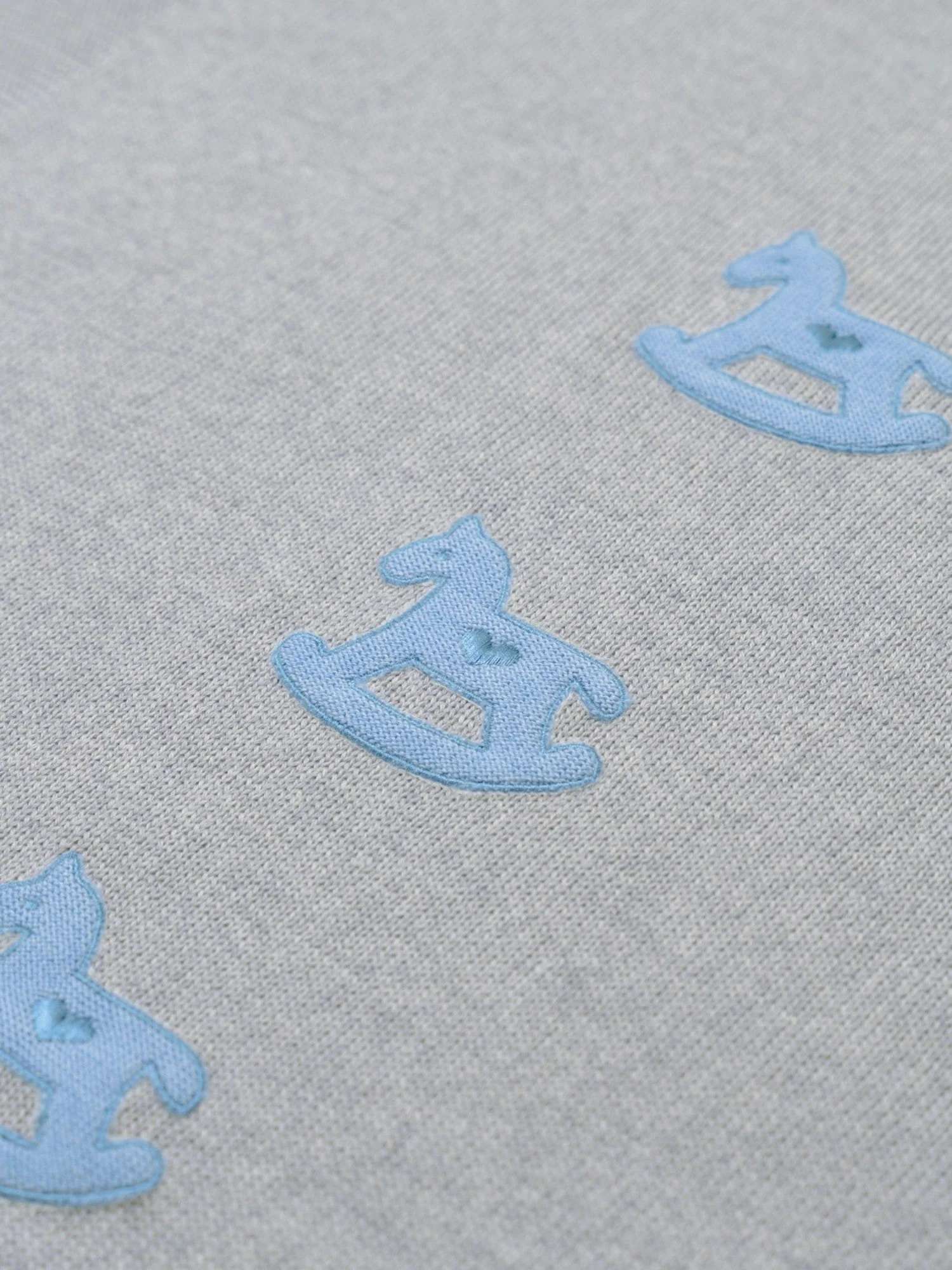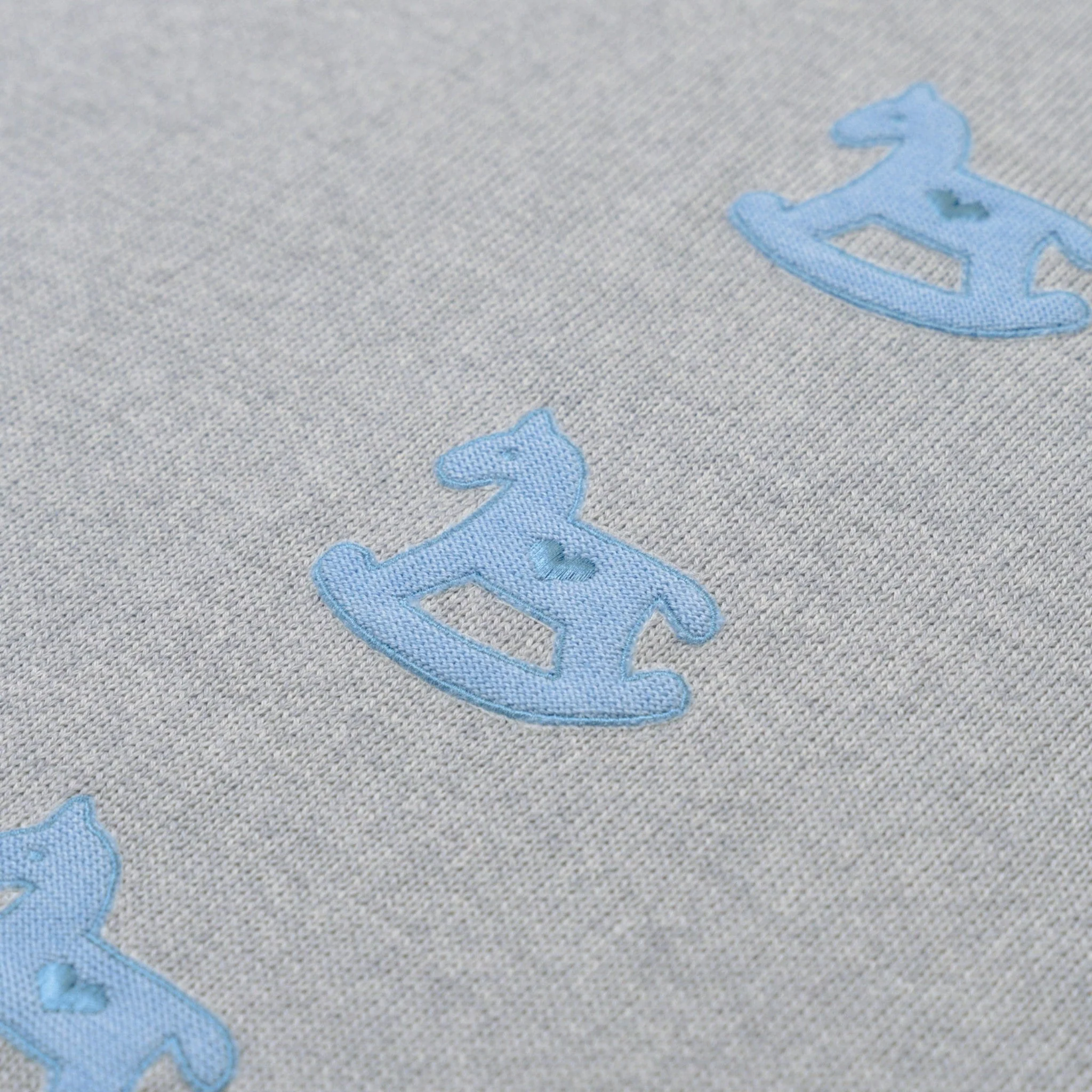Coperta Cavallino a dondolo realizzata in lana 100% made in Italy. Le prime coccole non si scordano mai: la tenerezza unica del cavallino a dondolo si unisce alla morbidezza della lana merino in un abbinamento di colore grigio/avio nuovo e di tendenza. Abbinalo a: Copertina, Tutina, Completo nascita, Cuffia e Babbucce.